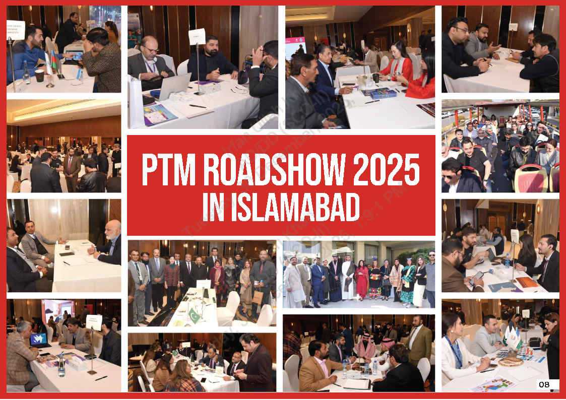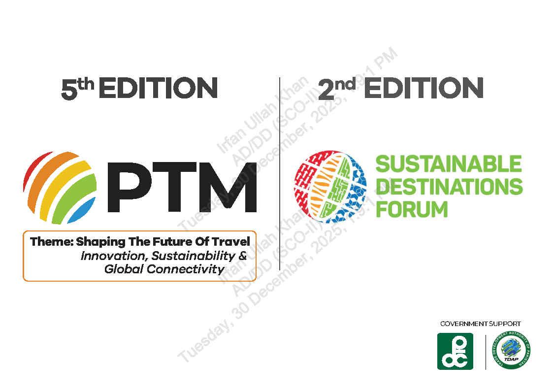- از سال ۲۰۱۷، نمایشگاه گردشگری پاکستان (Pakistan Travel Mart) با ارائه پتانسیل بینظیر تجاری، شبکهسازی و مشارکت، رشد و فرصتهایی را در صنعت گردشگری و توریسم کشور ایجاد کرده است. اکنون پنجمین دوره خود را با موضوع «شکلدهی به آینده سفر: نوآوری، پایداری و اتصال جهانی» آغاز میکند. PTM یک نمایشگاه جهانی را با حضور منطقه جهانی هوانوردی، که خطوط هوایی و ذینفعان سفر هوایی را به هم متصل میکند؛ منطقه جهانی مقاصد، که نقاط مهم گردشگری بینالمللی و محلی را به نمایش میگذارد؛ منطقه فناوری و سفر، که شامل یک منطقه نوآوری و میز ارائه استارتآپ است؛ منطقه مهماننوازی، که هتلها و پیشنهادات اقامتی را برجسته میکند؛ و سلام پاکستان، که با متحد کردن هیئتهای گردشگری استانی، اپراتورهای تور و مقامات تجاری برای نمایش پیشنهادات متنوع سفر کشور، هویت ملی را جشن میگیرد، برگزار میکند. امسال، سالنهای تجاری فضاهای شبکهای ممتازی را فراهم میکنند، در حالی که پادکست PTM، که به صورت زنده از محل نمایشگاه پخش میشود، و نمایش جادهای PTM، تعامل را فراتر از رویداد گسترش میدهند و صنعت را در سراسر کشور به هم متصل میکنند.